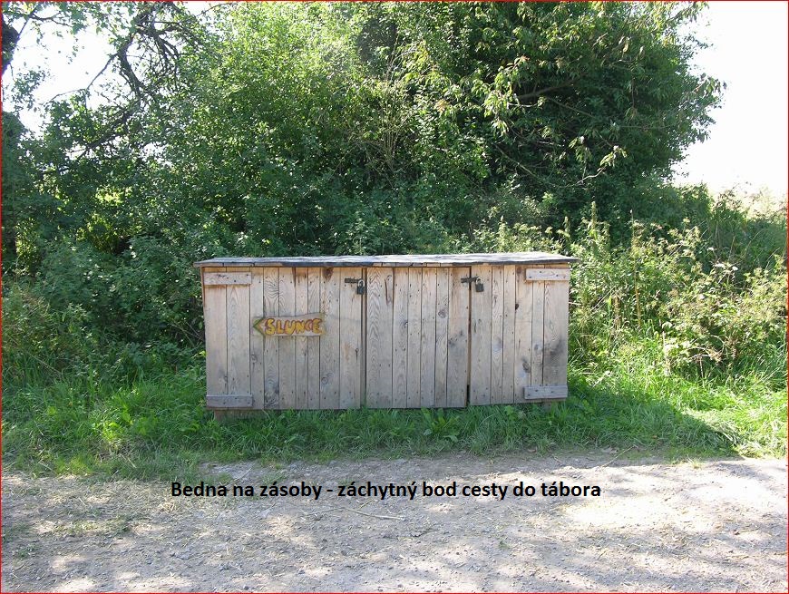Protože předpokládáme, že již na naši táborovou základnu trefíte – nebude v sobotu cesta značena žádnou šipkou. Nicméně pro jistotu opět uvádíme souřadnice, mapku a fotografii bedny na zásoby: